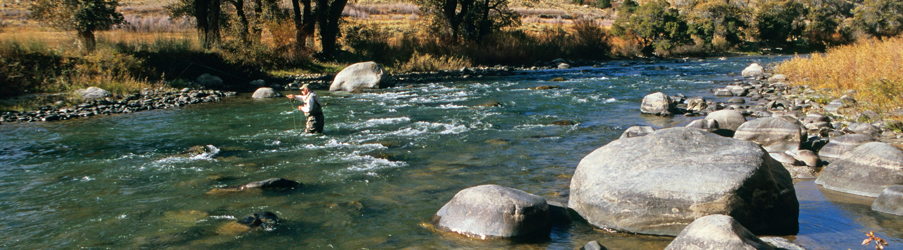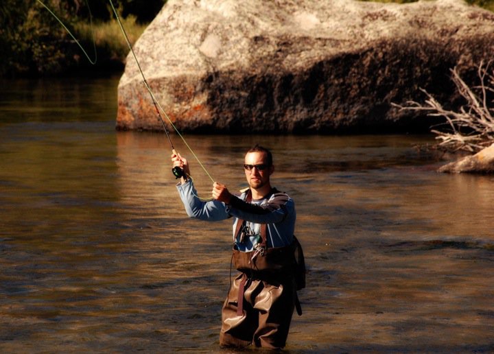 Das zwei Millionen Morgen große Wind River Indianerreservat neben unserer Ranch hat spektakuläre Gelegenheiten, Forellen zu angeln. Dafür braucht man eine Sondergenehmigung, die ungefähr $30 pro Tag kostet. Diese Gebühr schreckt die meisten Ortsansässigen ab, weshalb an den Gewässern dort wenig gefischt wird. Bull Creek, Dinwoody Creek und der Indianeranteil des Wind Rivers sind innerhalb einer Stunde oder weniger per Auto erreichbar. Das Bull Creek Stauwasser unterhalb des Reservoirs enhält viele eindrucksvolle Braunforellen, einige über 50 cm lang, die manchmal bei schnellen Strömungen schwer zu landen sind. Die Fische tauchen sporadisch für „hatches“ (Insektenschlüpfe) auf, was oft schwer zu erkennen ist und damit zum Teil auch sehr frustrierend sein kann. Das Fischen ist am besten bei Sonnenauf- oder Sonnenuntergang.