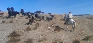 First Major Task: To herd the cows and calves from their 100 acre pasture into the corral. No small feat!