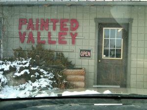 My last stop was at Painted Valley Ranch Supply, which, if I am going to be completely honest, I must admit that I drove right past on the way home. Five minutes after my mistake, Gupta picked her head up as a I groaned, shook my head in dismay and made a u-turn– lists aren’t foolproof! I went to Painted Valley to pick up a few bags of Strategy, a pellet horse feed that we give to the stallions. Shopping there is the true small town experience:
