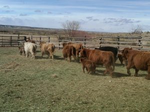 The first step of our multi-phase plan was to get the heifers to headquarters. At headquarters, we have a complex of eleven pens, several alleyways, as well as the all-important chute. The heifers have been living in a pasture about 4 miles from headquarters with the Scottish Highland cows and their calves for the past several months. We have a pen adjacent to their pasture, so we have been feeding them their rations of hay in the pen for the past several days in preparation for moving them. Rather than having to struggle to get them out of the pasture, they all walked in calmly this morning since they expected to receive their hay inside of the pen. After they were inside of the pen, we simply shut the gate. Easy, right?