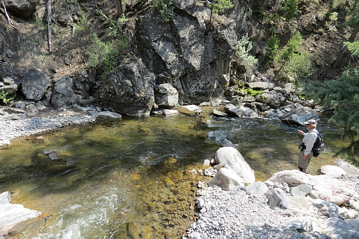 It was clear to us that there was considerable fishing pressure near the public parking areas because most fishermen using the main highway go no more than 150 yards from their cars. We only started to catch rainbows and browns after walking over 200 yards.