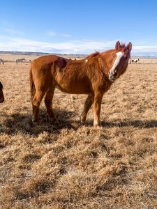 Laredo is over 30 years old and is Bayard’s horse, who is 92, and it’s hard to say who is aging better! This horse is such a character— he could still probably out-walk any horse in the herd. Like Bayard, Laredo wastes no time.