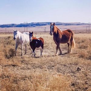This is a funny trio. Misty (grey Quarter Horse mare) and Minihaha (paint pony mare) have been best friends since the moment Minihaha arrived a few years ago. The devotion and kindness between the two of them is so endearing. However, they are not particularly socially successful in the equine world. They are a horsey island that no one else wants to visit, in all honesty. At least they have had each other! Nova, beautiful, massive Nova, a Belgian mare, joined the herd end of last season. She was kept in a separate pen at the ranch, knowing she would better integrate with the herd at the farm. What we did NOT expect was her joining up with the two misfits, Misty and Minihaha, making them a powerful threesome. BUT THAT IS EXACTLY WHAT HAPPENED. Horses, like people, continually surprise.