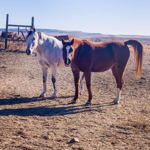Charlie Brown, on the left, is a mustang gelding, and Marshall, a Quarter Horse gelding, did not arrive to the ranch together, but soon became good friends!